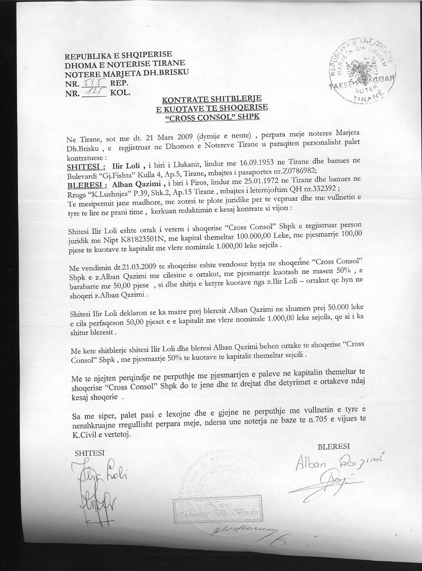 Kontratë Shitblerje të Kuotave të Kapitalit datë 21.03.2009
