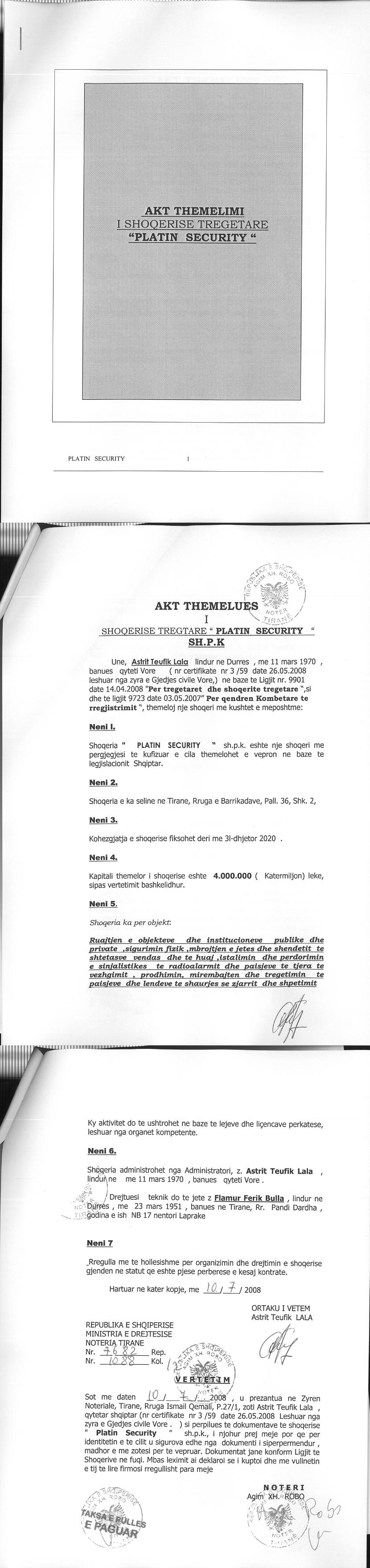 → Ekstrakt Historik i Regjistrit Tregtar date 29.04.2025 → Akt themelimi i Shoqerise → Kontratë Shitje Kuotash datë 08.07.2013 |