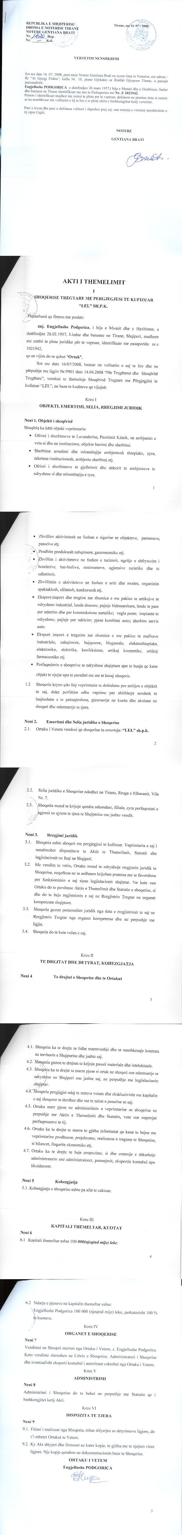→ Ekstrakt historik i regjistrit tregtar date 30.10.2021 → Akti i themelimit → Vendimi i ortakut te vetem per zmadhimin e kapitalit date 22.06.2012 |