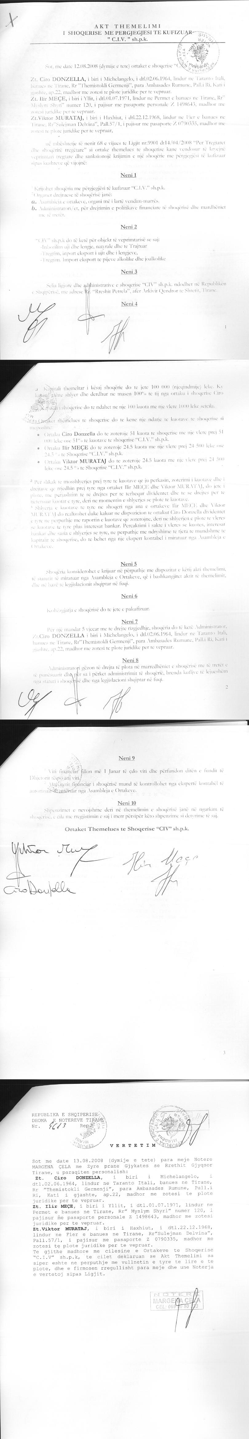 shoqëria “C.I.V” sh.p.k., me Nuis (Nipt)- K82014009D. II. Me datë 19.12.2022, me anë të Urdhërit Nr.1637 Prot., Nr.2331 Dosje., lëshuar nga Shërbimi Përmbarimor Privat “TDR Group” sh.p.k., u urdhërua: Vendosja e masës së sekuestros konservative mbi të gjitha aksionet zotëruara nga dorezanesi Ciro Donzella, shoqëria “C.I.V” sh.p.k., me Nuis (Nipt)- K82014009D. |