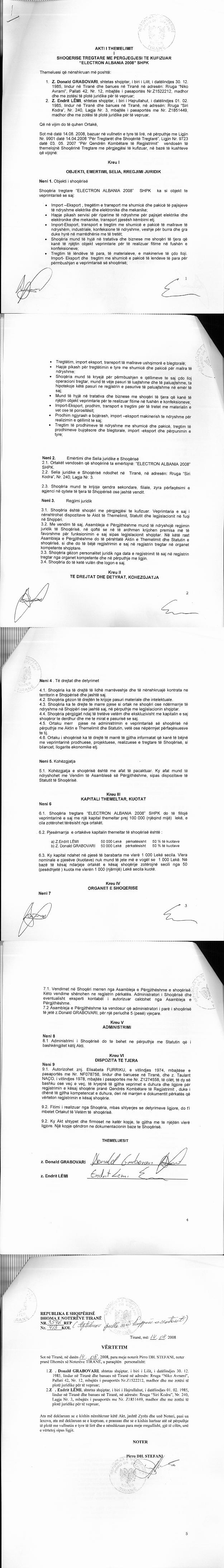 | Emërtime të tjera Tregtare: | ELECTRON ALBANIA 2008 |