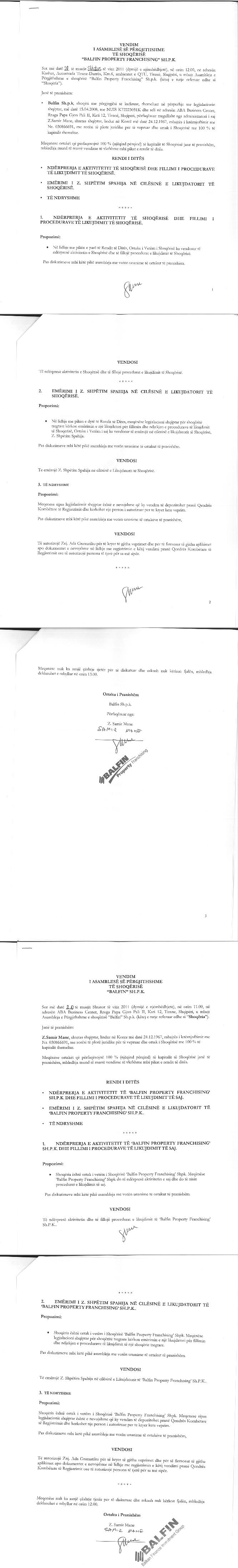 | Çështje Ligjore: | I. Me datë 20.09.2011, me vendim të asamblesë së përgjithshme, u vendos ndërprerja e aktivitetit te shoqerise dhe fillimi i