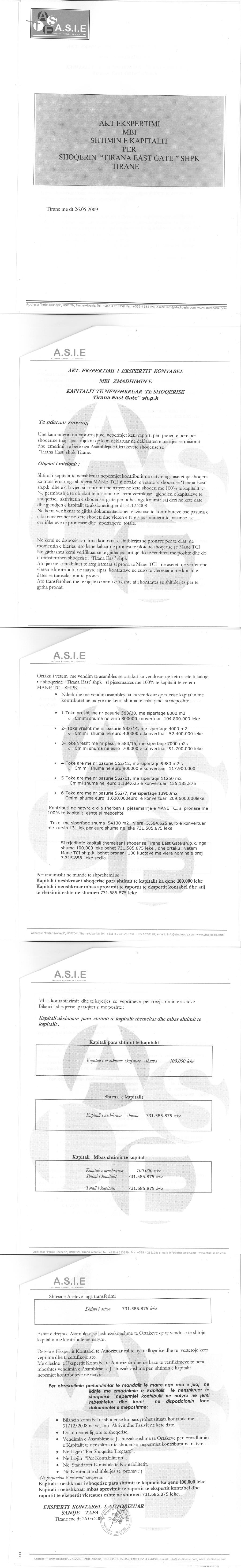 Akt Ekspertimi mbi Shtimin e Kapitali datë 26.05.2009