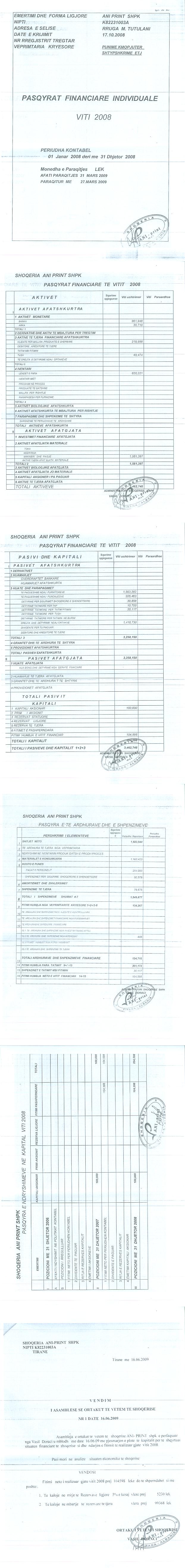 | Objekti i Veprimtarisë: | Punime ne kompjuter, fotokopje dhe shtypshkrime, importeksport, shitje me shumice e pakice te mallrave te ndryshem, etj. Shtepi botuese dhe shtypshkronje. |
