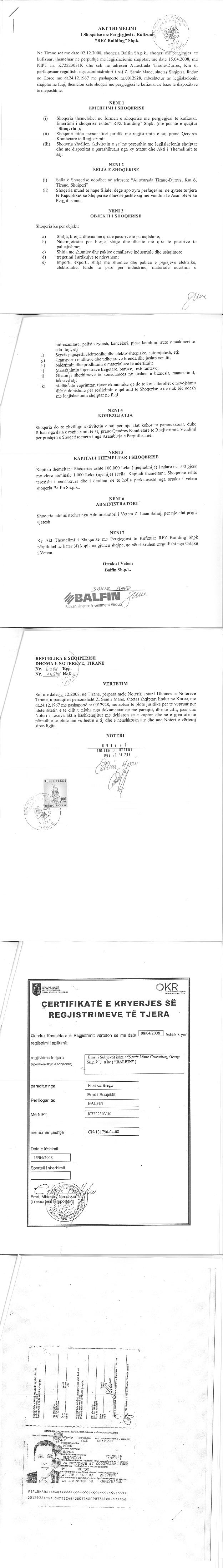 → Ekstrakt Historik i Regjistrit Tregtar date 20.04.2023 → Akt themelimi i Shoqerise → Vendim i Asamblesë së Përgjithshme, Zmadhim Kapitali datë 08.04.2013 → Vendim i Asamblesë së Përgjithshme, Bashkimi me Përthithje datë 06.10.2016 → Marrëveshje për Bashkimin me Përthithje të Shoqërive "Spar Albania" shpk dhe "RFZ Building" shpk datë 06.12.2016 → Ekstrakt Historik i Regjistrit te Pronareve Perfitues date 20.04.2023 |