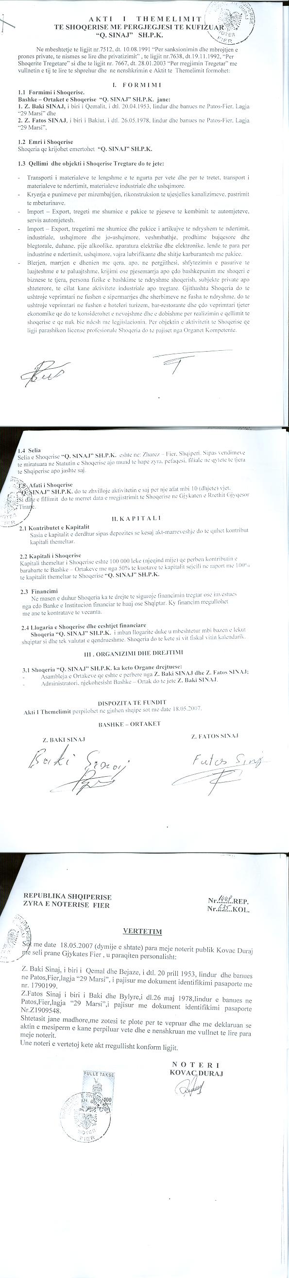 | Emërtime të tjera Tregtare: | Q.SINAJ |
