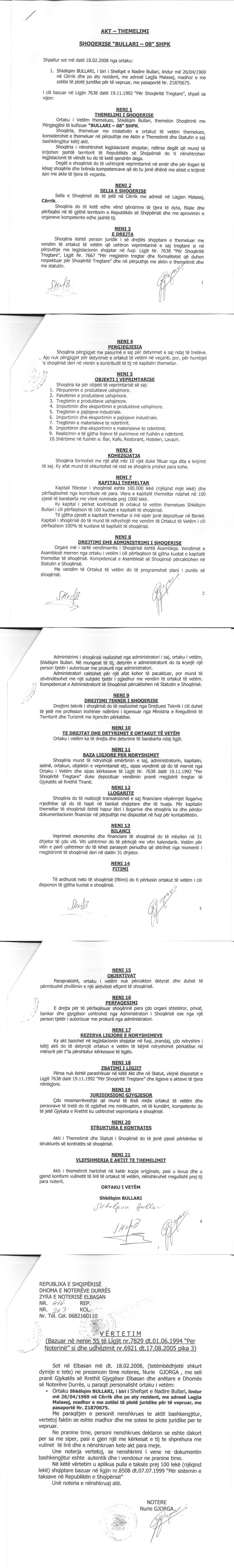 → Ekstrakt historik i regjistrit tregtar date 18.11.2021 → Akti i themelimit → Projekt marreveshje per bashkimin e shoqerive date 25.04.2019 → Marreveshja per bashkimin e shoqerive date 08.01.2020 → Kontrate dhurimi e kuotave date 26.08.2019 → Vendim i ortakut te vetem per zmadhimin e kapitalit date 28.06.2010 → Vendimi i ortakut te vetem per zmadhimin e kapitalit date 17.12.2014 |