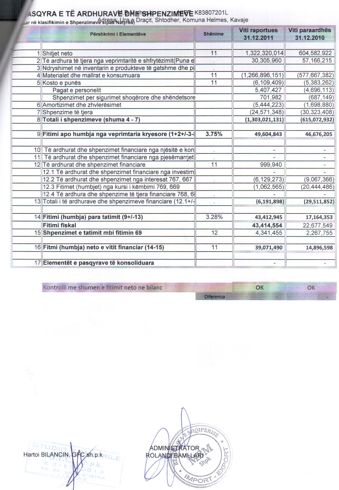 Xhiro Vjetore(Lekë) 2022:3 378 024 345,00 Xhiro Vjetore(Lekë) 2021:2 380 436 686,00 Xhiro Vjetore(Lekë) 2020:1 960 417 892,00 Xhiro Vjetore(Lekë) 2019:1 788 151 810,00 Xhiro Vjetore(Lekë) 2018:1 616 315 218,00 Xhiro Vjetore(Lekë) 2017:1 759 516 626,00 Xhiro Vjetore(Lekë) 2016:1 831 521 270,00 Xhiro Vjetore(Lekë) 2015:1 380 140 406,00 Xhiro Vjetore(Lekë) 2014: 1 638 541 165,00 Xhiro Vjetore(Lekë) 2013: 1 453 611 308,00 Xhiro Vjetore(Lekë) 2012: 1 273 820 246,00 Xhiro Vjetore(Lekë) 2011: 1 352 625 974,00 Xhiro Vjetore(Lekë) 2010: 661 749 137,00 |