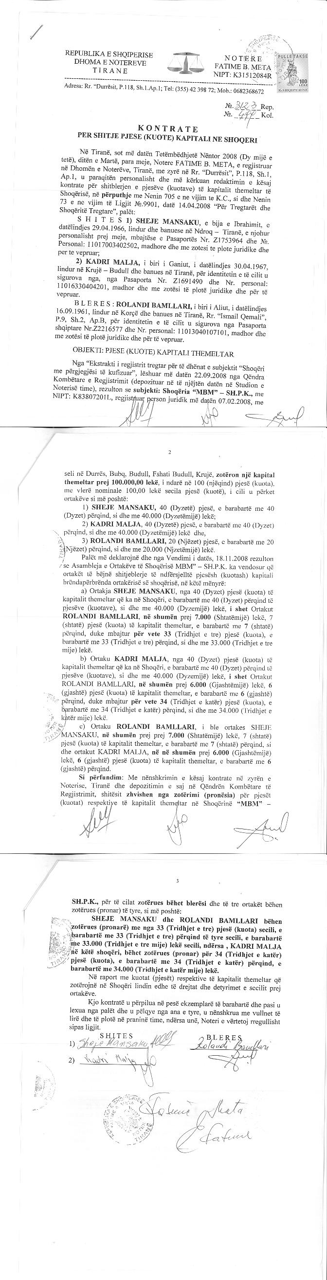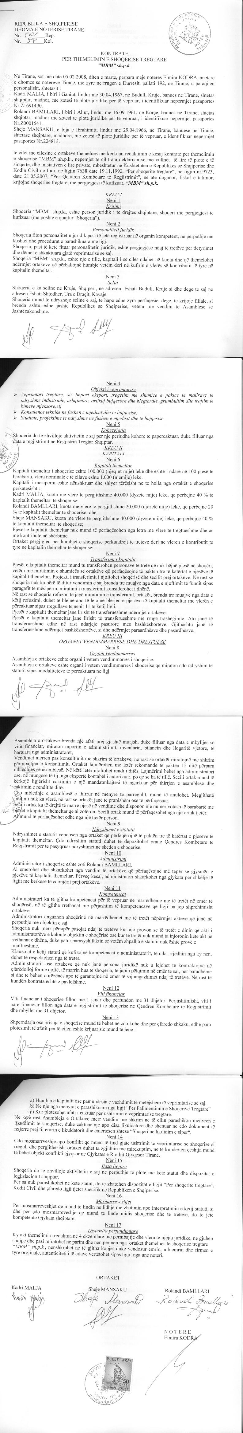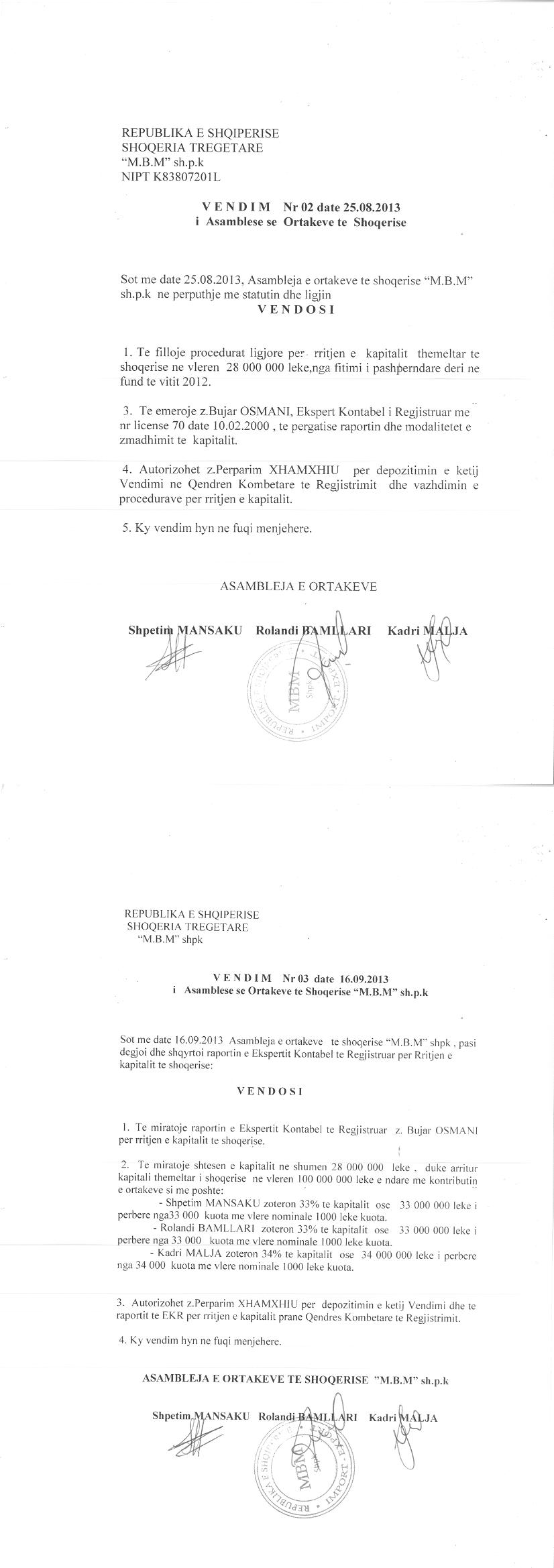 → Ekstrakt historik i regjistrit tregtar date 18.11.2023 → Akti i themelimit → Urdher per venien e sekuestros konservative date 05.07.2022 → Kontrate per dhurim kuotash kapitali date 14.01.2012 → Vendim i asamblese se ortakeve per zmadhimin e kapitalit date 20.08.2014 → Kontrate per shitje kuotash date 05.11.2009 → Kontrate per shitje kuotash date 18.11.2008 → Vendimi i asamblese se ortakeve per zmadhimin e kapitalit date 16.07.2010 → Vendimi i asamblese se ortakeve per zmadhimin e kapitalit date 02.09.2011 → Vendimi i asamblese se ortakeve per zmadhimin e kapitalit date 25.08.2013 → Vendimi i asamblese se ortakeve per zmadhimin e kapitalit date 14.08.2012 → Vendim i asamblese se ortakeve per zmadhimin e kapitalit date 02.10.2018 → Vendimi i asamblese se ortakeve per zmadhimin e kapitalit date 03.09.2015 → Kontrate shitje kuotash kapitali date 13.07.2022 → Vendimi i asamblese se ortakeve per zmadhimin e kapitalit date 25.08.2017 → Vendimi i asamblese se ortakeve per zmadhimin e kapitalit date 02.10.2018 |