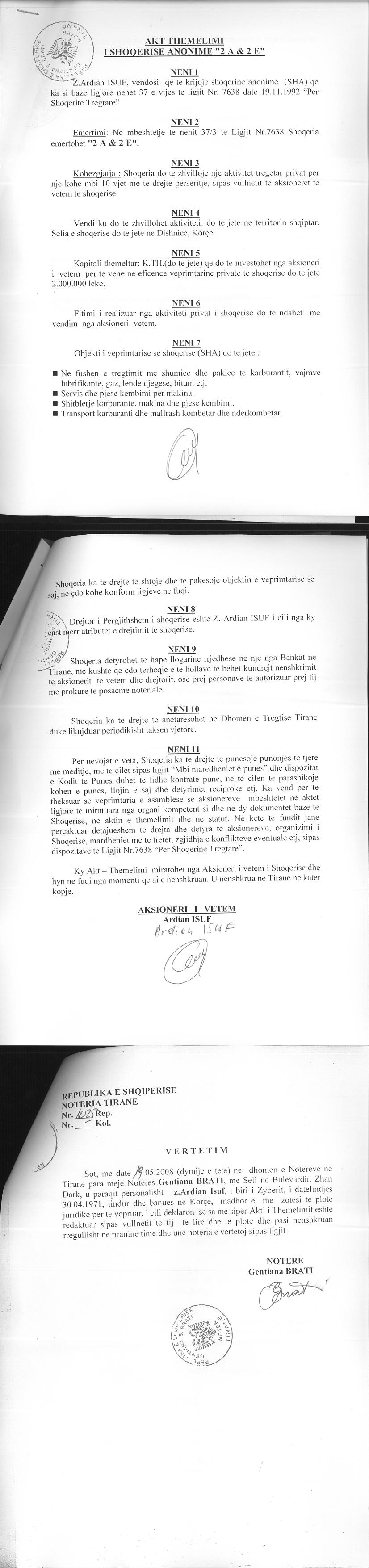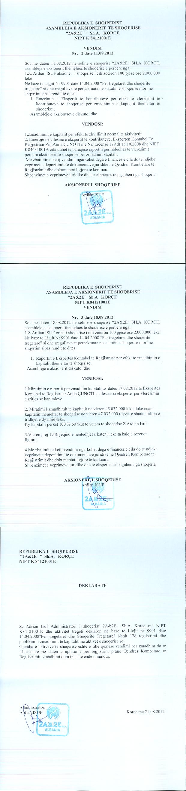 → Ekstrakt historik i regjistrit tregtar date 27.11.2023 → Akti i themelimit → Vendim i asamblese se ortakeve per zmadhimin e kapitalit date 11.08.2012 |