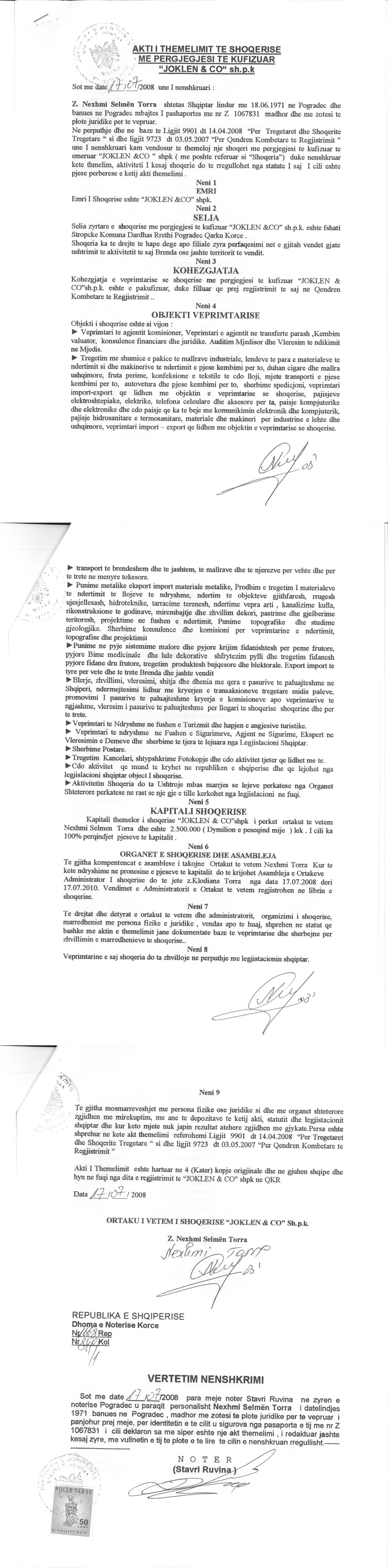 | Emërtime të tjera Tregtare: | JOKLEN & CO |