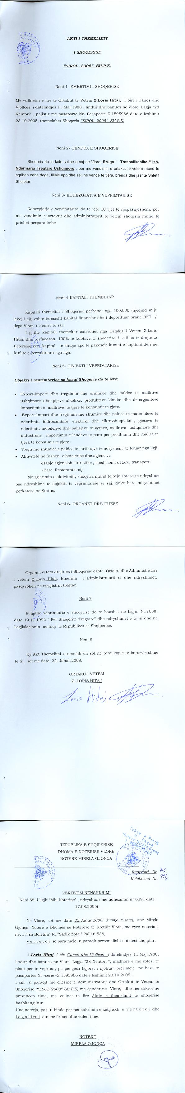 → Ekstrakt Historik i Regjistrit Tregtar date 22.02.2023 → Akt themelimi i Shoqerise → Urdher per Venie Sekuestro date 25.03.2013 → Urdher per Venie Sekuestro date 01.07.2016 |