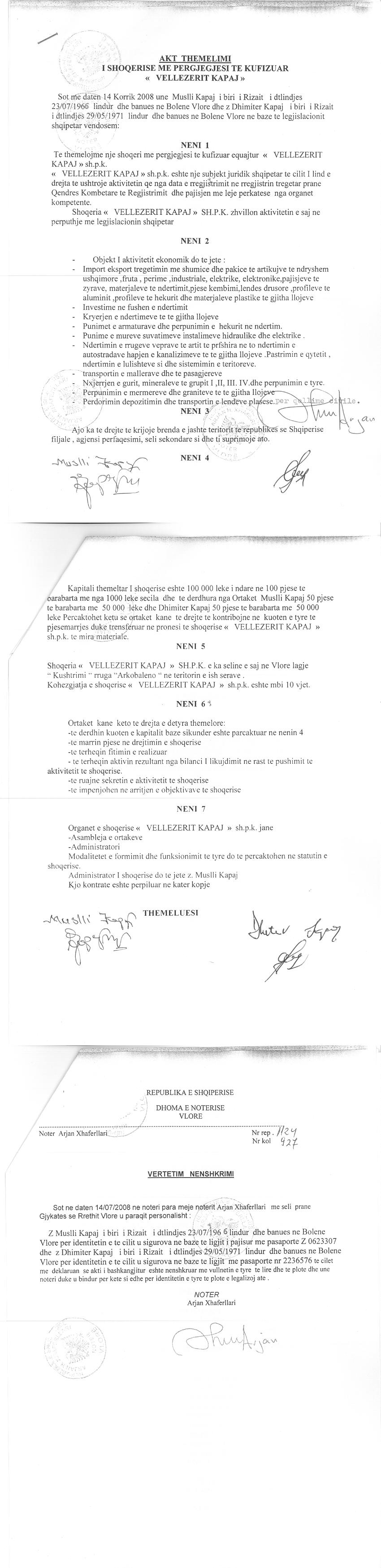 → Ekstrakti Historik i Regjistrit Tregtar date 25.10.2021 → Akti i themelimit te Shoqerise |