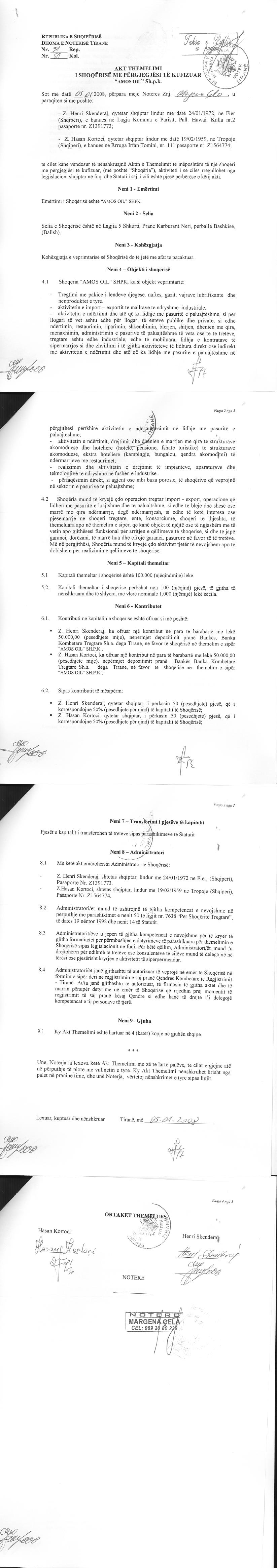 | Objekti i Veprimtarisë: | Tregtim dhe shitje blerje me shumice dhe pakice te naftes dhe te nenprodukteve te saj.Transport te naftes dhe te gazit dhe nenprodukteve te tyre. Import-eksport i naftes dhe gazit, vajit lubrifiikant, solsrit, bitumit etj dhe nenproduketeve le tyre, sherbime te ndryshme, veprimtari prodhuese. Akumulim, grumbullim, transportim, ruajtje, riciklim dhe modifikim strukturor te vajrave lubrifikante te perdorur, i distilateve te pirolizave dhe mbetjeve te hidrokarbureve me destinacion prodhimin e bitumit dhe derivateve te tij ( vaj, graso etj).Aktivitetin e ndertimit dhe ate qe ka lidhje me pasurite e paluajtshme, si dhe per llogari te vet ashtu dhe per llogari te enteve publike dhe private, si dhe ndertimin, restaurimin, riparimin, shkembimin, blerjen, shitjen, dhenien me qera, menaxhimin, administrimin e pasurive te paluajtshme te veta ose te treteve, tregtare ashtu dhe industriale dhe te mobiluara, lidhja e kontratave te sipermarrjes si dhe zhvillimi i te gjitha aktiviteteve te lidhura direkt ose indirekt me aktivitetin e ndertimit dhe ate qe ka lidhje me pasurite e paluajtshme ne pergjithesi perfshire aktivitetin e ndermjetesimit ne lidhje me pasurite e paluajtshme. Aktivitetin e ndertimit, drejtimin dhe dhenien e marrjen me qira te strukturave akomoduese dhe hotelerie (hotele, pensione, fshat turishke), te strukturave akomoduese, ekstra hotelerie (kampingje, bungalou, qendra akomodimi), te ndermarrjeve me restaurimet; Realizimin dhe aktivitetin e drejtimit te impianteve, apararurave dhe teknologjive te ndryshme ne fushen e industrise. Perfaqesimin direkt si agjent ose mbi baza porosie te shoqerive qe veprojne ne sektorin e pasurive te paluajtshme. Shoqeria mund te kryej cdo operacion tregtar import-export, operacione qe lidhen me pasurite e luajtshme dhe te paluajtshme, si dhe te blerje dhe shese ose marre me qira ndermarrje, dege ndermarrjesh, si dhe te kete interesa ose pjesmarrje ne shoqeri tregtare, ente, konsorciume, shoqeri te thjeshta, te themeluara apo ne themelim e siper, qe kane objekt te njejte ose te ngjashem me te vetin apo gjithesesi, te marre hua dhe ofroje garanci, pasurore ne favor te te treteve. Ne pergjithesi, Shoqeria mund te kryej cdo aktivitet tjeter te nevojshem apo te dobishem per realizimin e qellimeve te shoqerise. |