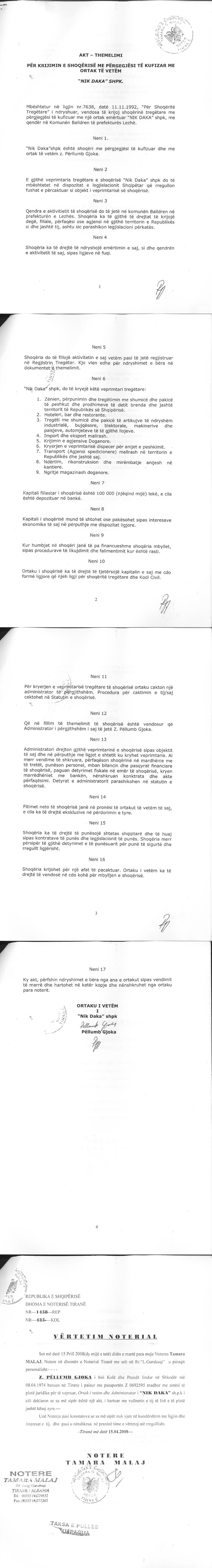 → Ekstrakt Historik i Regjistrit Tregtar date 27.07.2023 → Akt themelimi i Shoqerise → Ekstrakt Historik i Regjistrit Tregtar date 03.05.2025 |