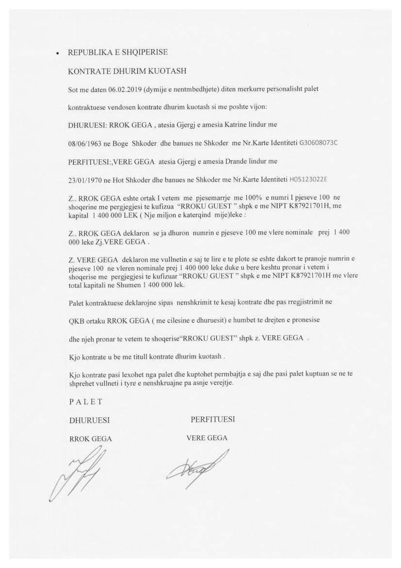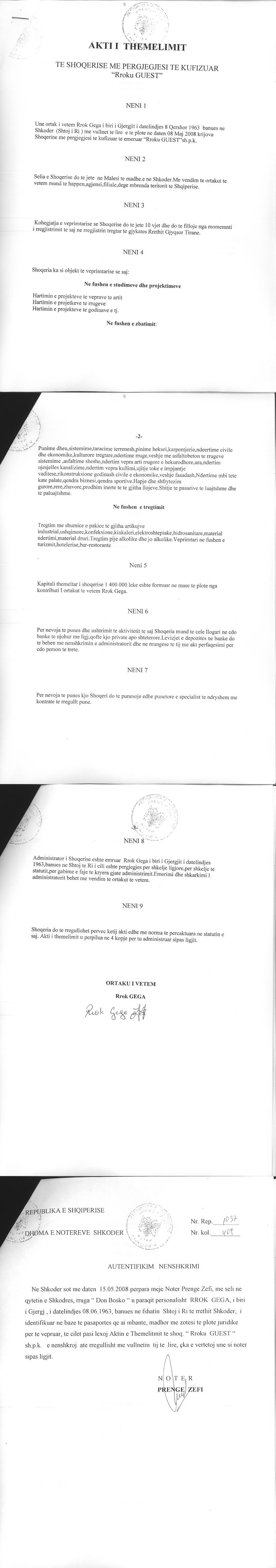 → Ekstrakt historik i regjistrit tregtar 20.06.2022 → Akti i themelimit → Kontrate dhurim kuotash 06.02.2019 → Ekstrakt Historik i Regjistrit Tregtar date 10.09.2024 |