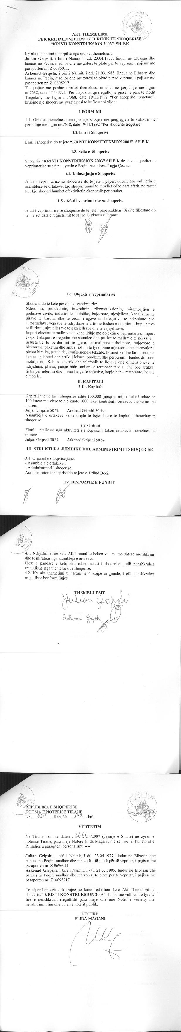 | Emërtime të tjera Tregtare: | KRISTI KONSTRUKSION 2004 |
