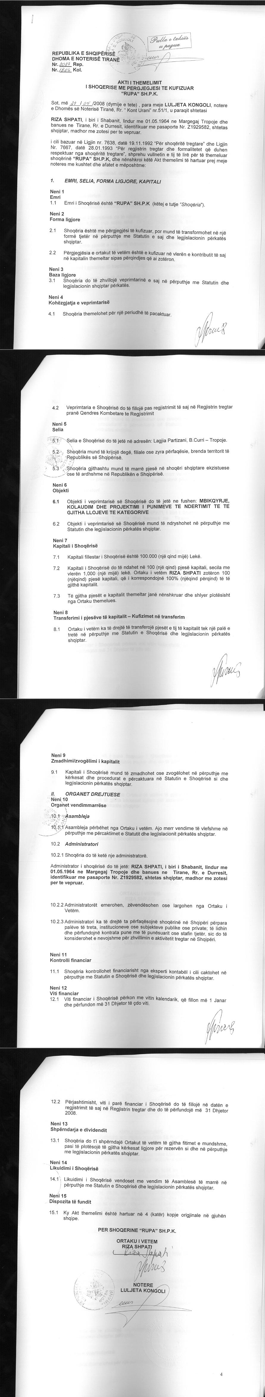 → Ekstrakt historik i regjistrit tregtar date 20.10.2021 → Akti i themelimit |