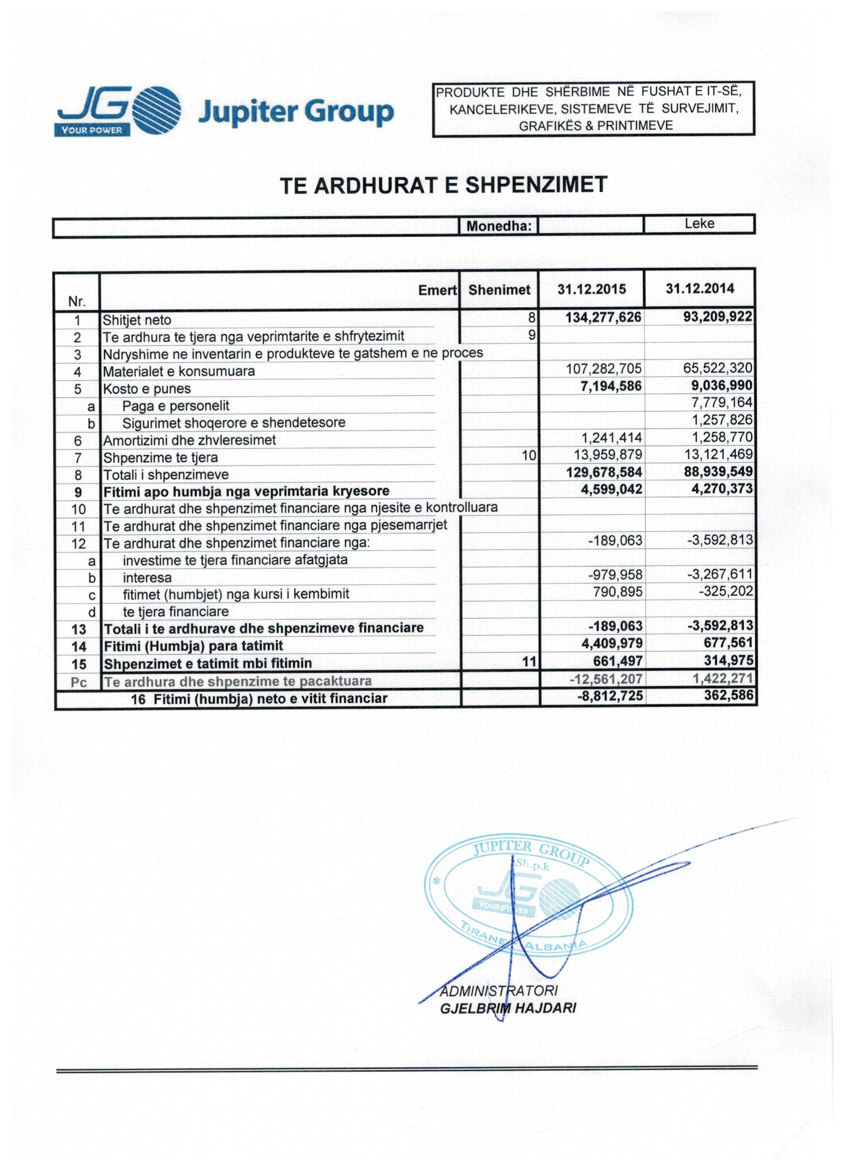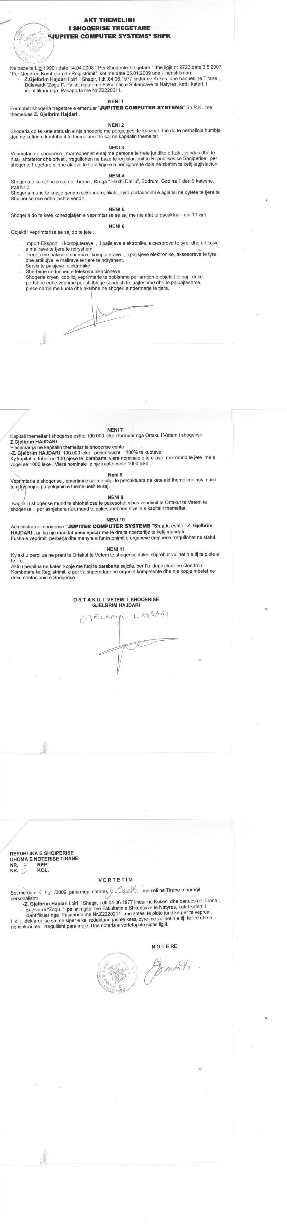 | Emërtime të tjera Tregtare: | Jupiter Group Albania |