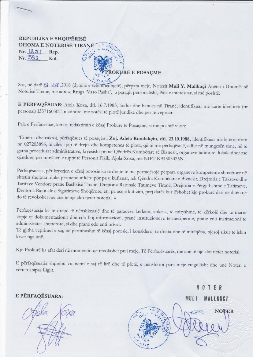 → Ekstrakt Historik i Regjistrit Tregtar date 02.11.2022 → Prokure e Posacme |