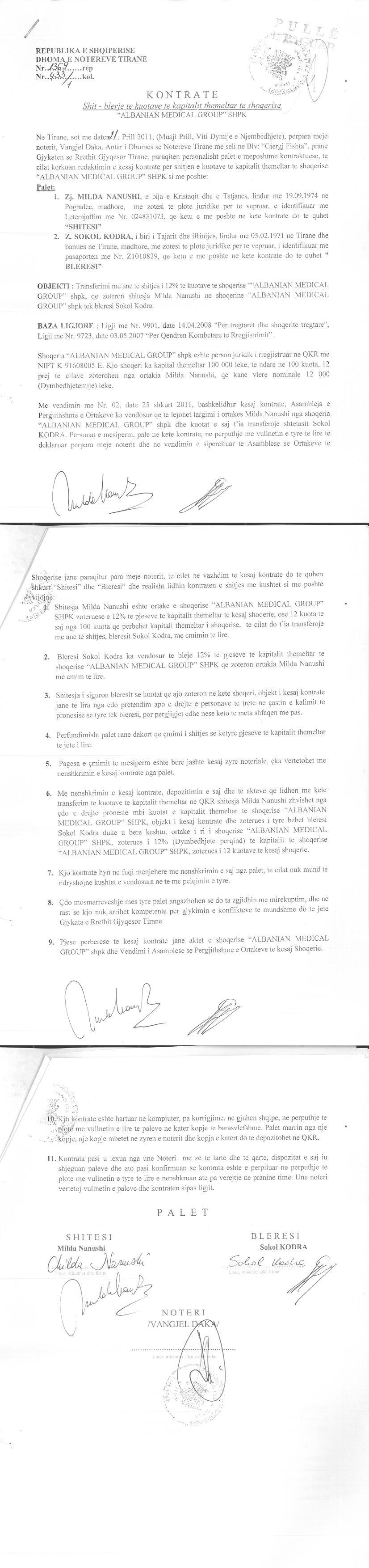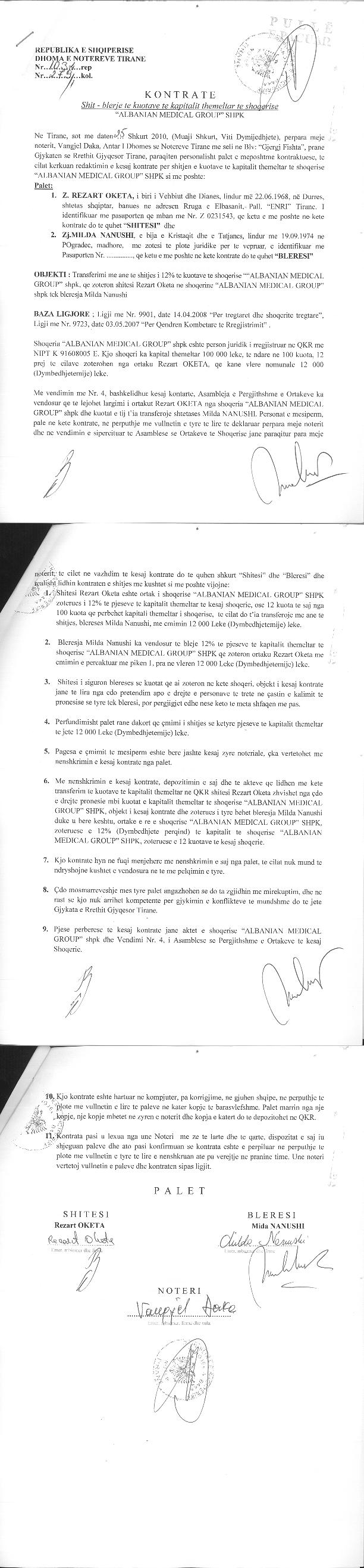 → Ekstrakti Historik i Regjistrit Tregtar date 18.08.2023 → Akti i themelimit te Shoqerise → Kontrate e Shitblerjes se Kuotave date 23.04.2009 → Kontrate e Shitblerjes se Kuotave date 25.02.2010 → Kontrate e Shitblerjes se Kuotave date 21.04.2011 → Vendim per kalimin ne ekzekutim te detyrueshem date 04.02.2013 → Urdher per vendosjen e sekuestros konservative date 15.08.2016 → Urdher per vendosjen e sekuestros konservative date 30.08.2021 |