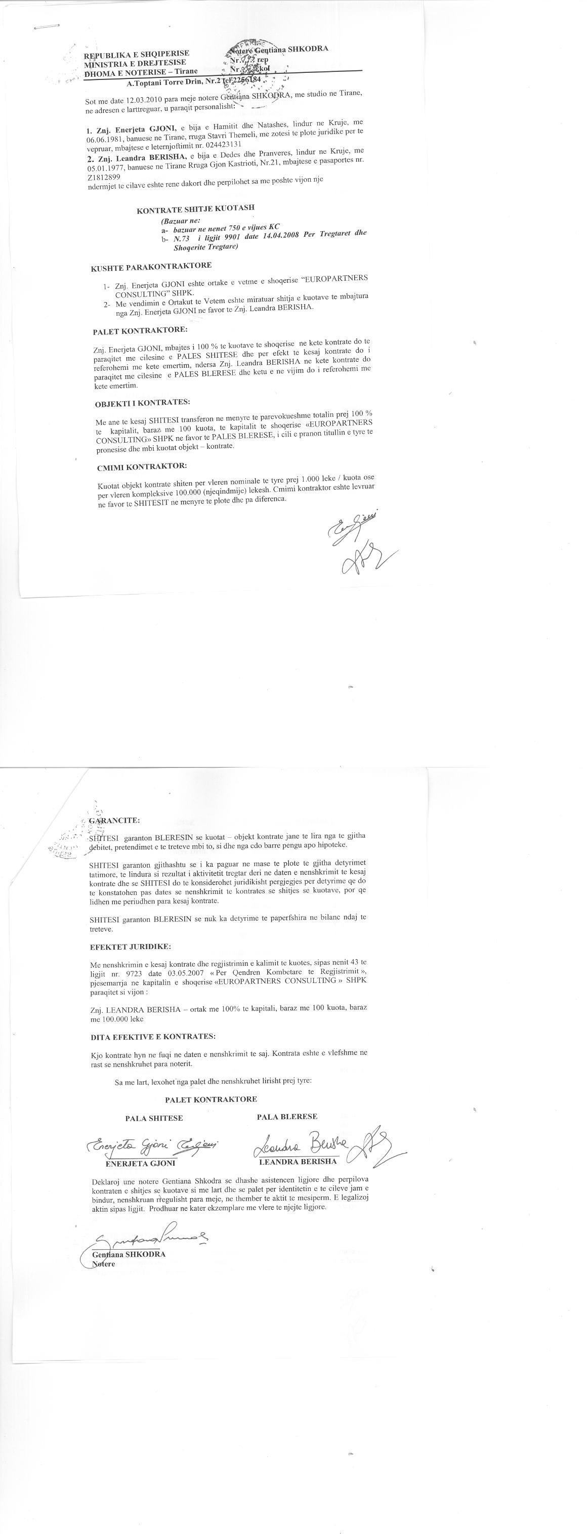 | Emërtime të tjera Tregtare: | EUROPARTNER'S CONSULTING |