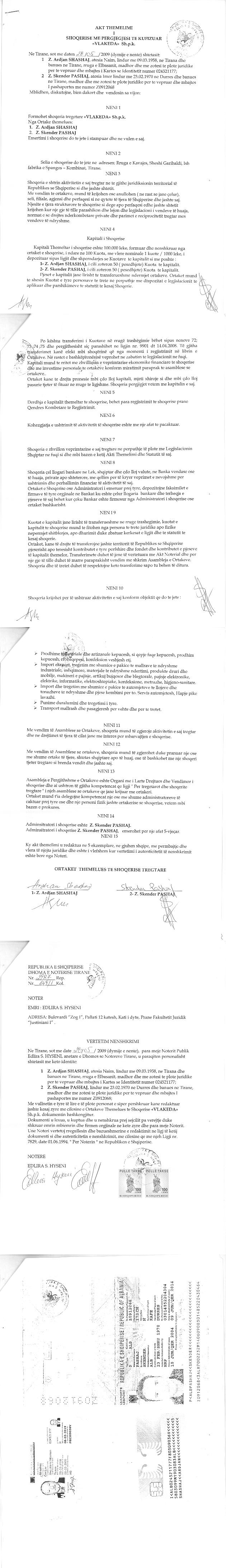 | Çështje Ligjore: | I. Me datë 25.06.2012, u hartua dhe miratua Projekt Marrëveshja e Bashkimit me Përthithje ndërmjet shoqërive tregtare “VLAKEDA” shpk (shoqëria e përthithur) dhe “FITAL” shpk (shoqëria përthithëse). Të drejtat dhe detyrimet që rrjedhin nga aksionet e “shoqërisë përthithëse” mbeten të pandryshuara dhe referohen në statusin e saj. II. Me datë 30.06.2012, u miratua Raporti i Bashkimit të Shoqërive. Raportet e kuotave të zotëruara nga ortakët e shoqërisë përthithëse mbeten të njëjta. Kapitali i shoqërisë përthithëse zmadhohet në masën e kapitalit të shoqërisë së përthithur. Shoqëria e përthithur “VLAKEDA” shpk do të çregjistrohet pas bashkimit. |