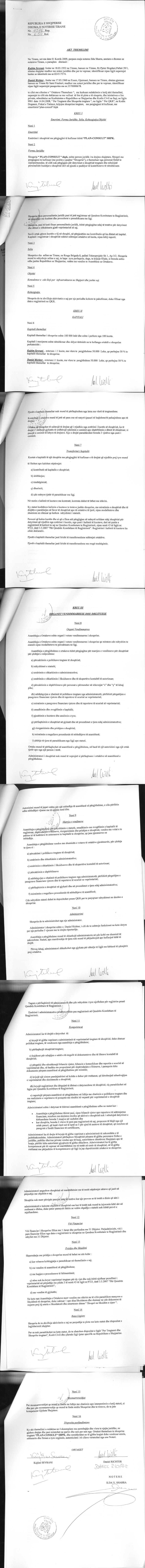 | Çështje Ligjore: | I.Sipas Vendimit te Asamblese se Pergjithshme date 22.06.2018, eshte ndryshuar statusi i shoqerise nga aktiv ne te pezulluar. II.Sipas Vendimit te Asamblese se Pergjithshme date 07.08.2018, eshte ndryshuar statusi i shoqerise nga i pezulluar ne aktiv. III.Sipas Vendimit te Asamblese se Pergjithshme date 23.11.2018, eshte ndryshuar statusi i shoqerise nga aktiv ne te pezulluar. IV.Sipas Vendimit te Asamblese se Pergjithshme date 14.01.2019, eshte ndryshuar statusi i shoqerise nga i pezulluar ne aktiv. |