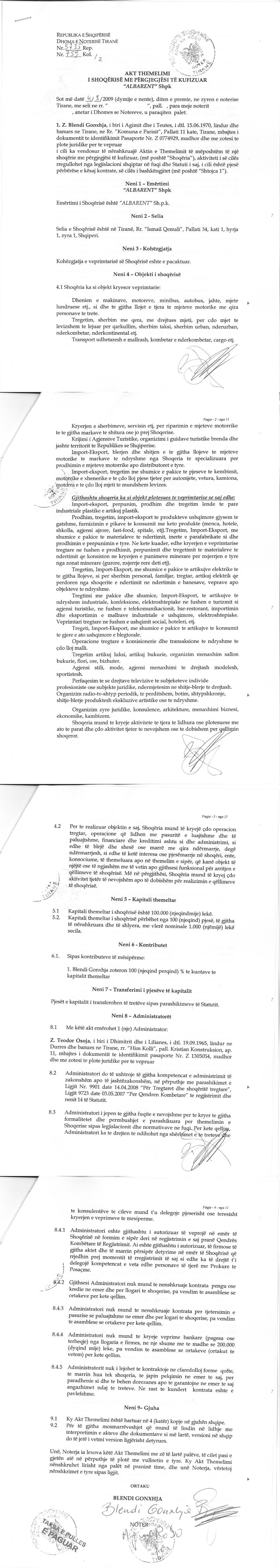→ Ekstrakt historik i regjistrit tregtar 16.06.2020 → Akti i themelimit → Ekstrakti Historik i Regjistrit Tregtar date 30.05.2024 → Lirim nga barra siguruese mbi titujt e pronesise date 08.11.2023 → Kontrate dhurimi date 11.01.2024 → Ekstrakt Historik i Regjistrit Tregtar date 30.08.2025 |