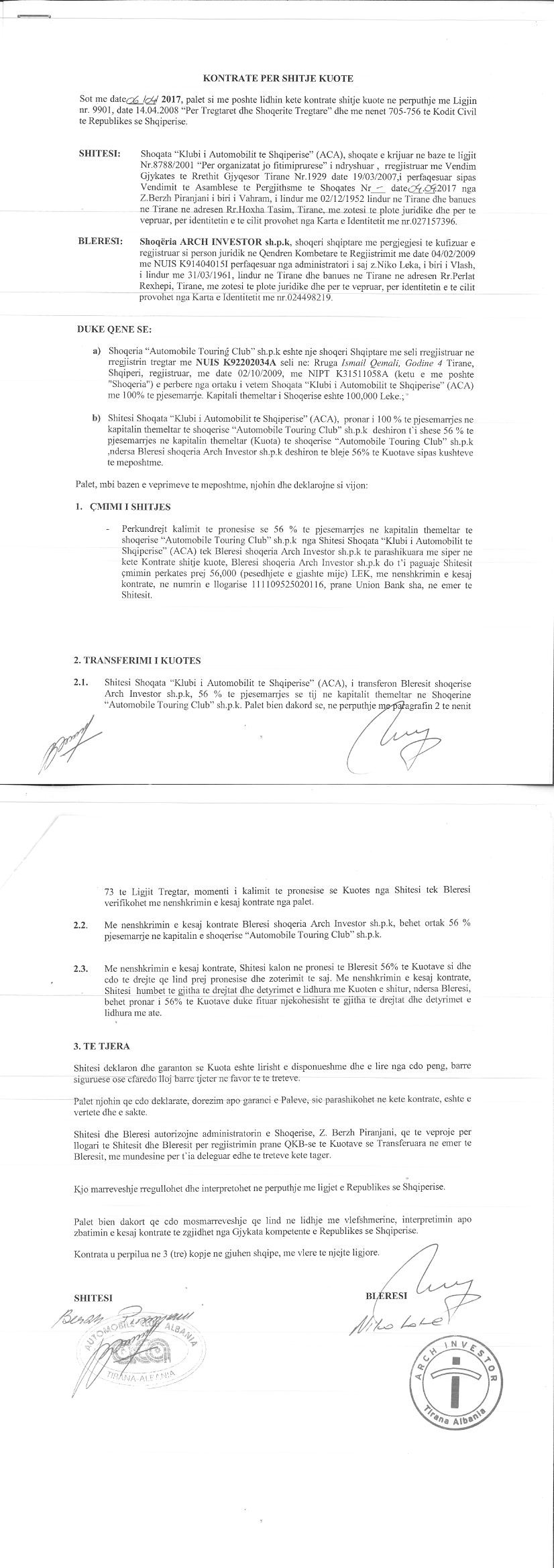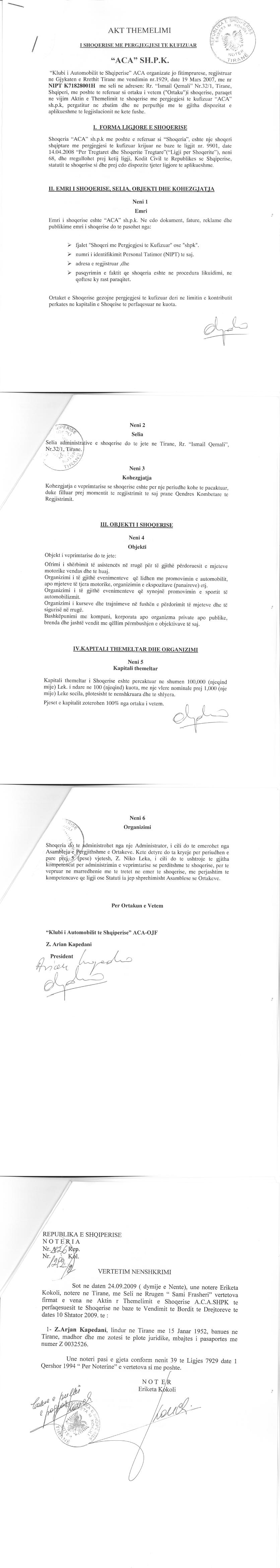 → Ekstrakt Historik i Regjistrit Tregtar date 10.07.2023 → Akt themelimi dhe Statuti i Shoqerise → Kontratë për Shitje Kuote datë 06.04.2017 (a) → Kontratë për Shitje Kuote datë 06.04.2017 (b) → Ekstrakt Historik i Regjistrit te Pronareve Perfitues date 10.07.2023 |