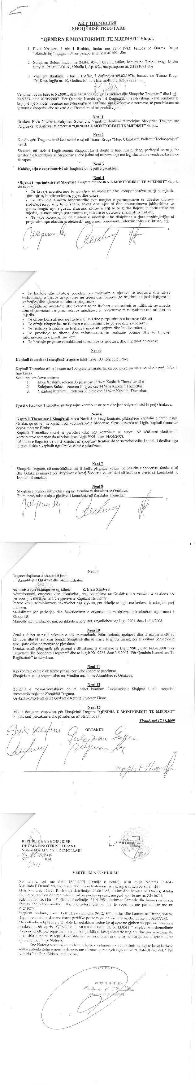 → Ekstrakt historik i regjistrit tregtar date 22.10.2021 → Akti i themelimit → Kontrate shitje kuote date 22.04.2014 |