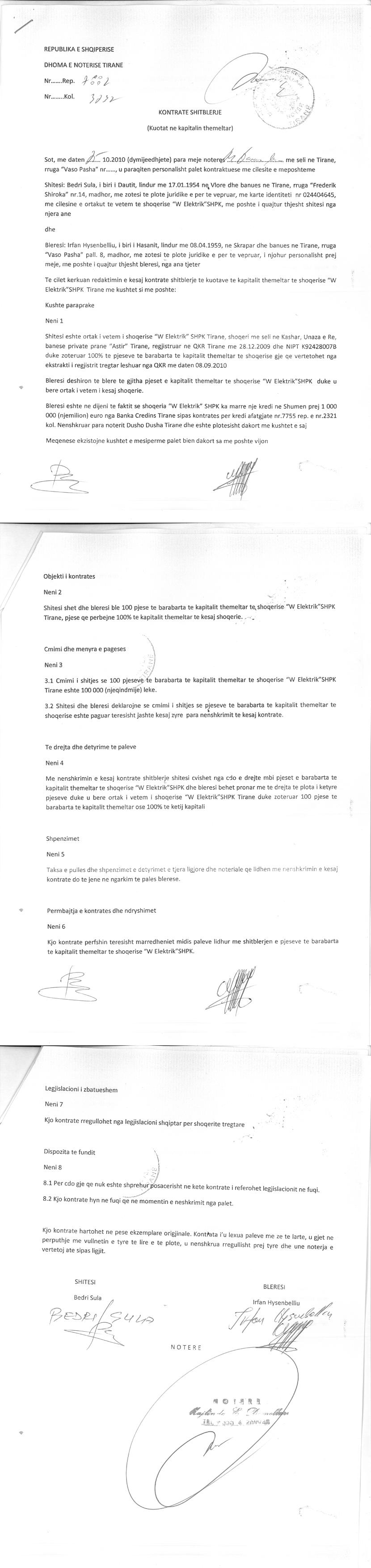 → Ekstrakt Historik i Regjistrit Tregtar date 13.04.2023 → Kontratë Shitblerje datë 25.10.2010 |