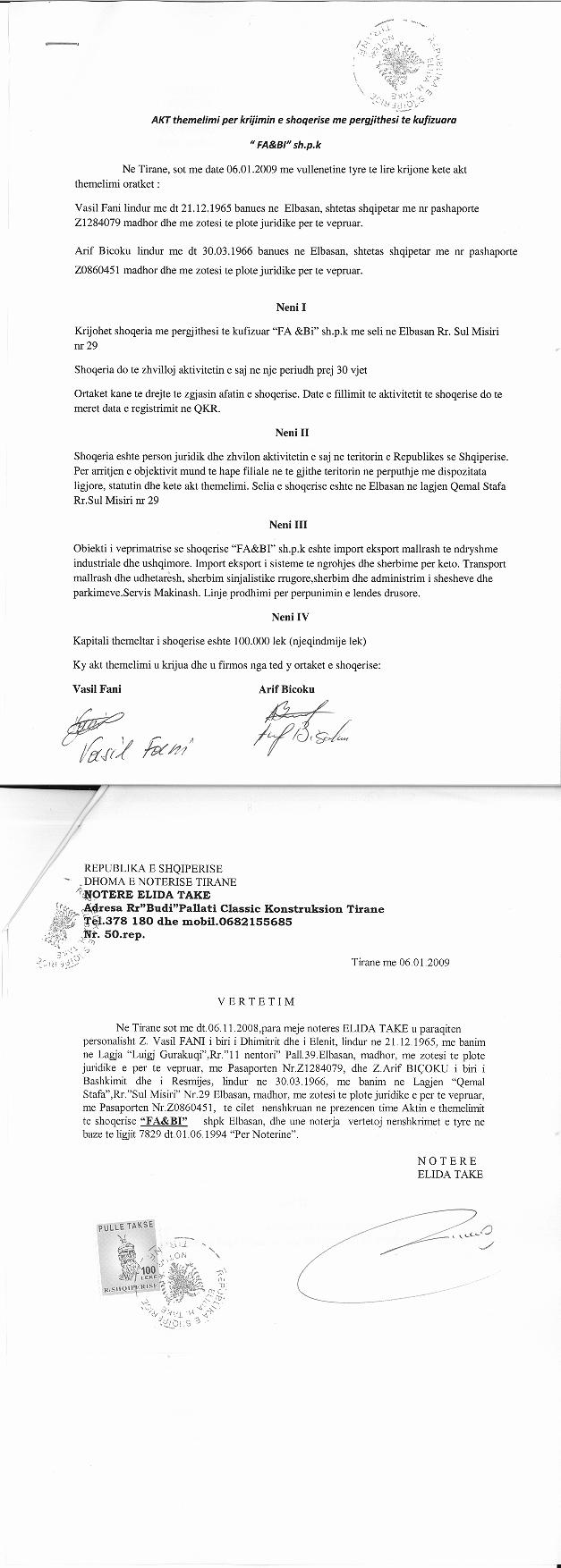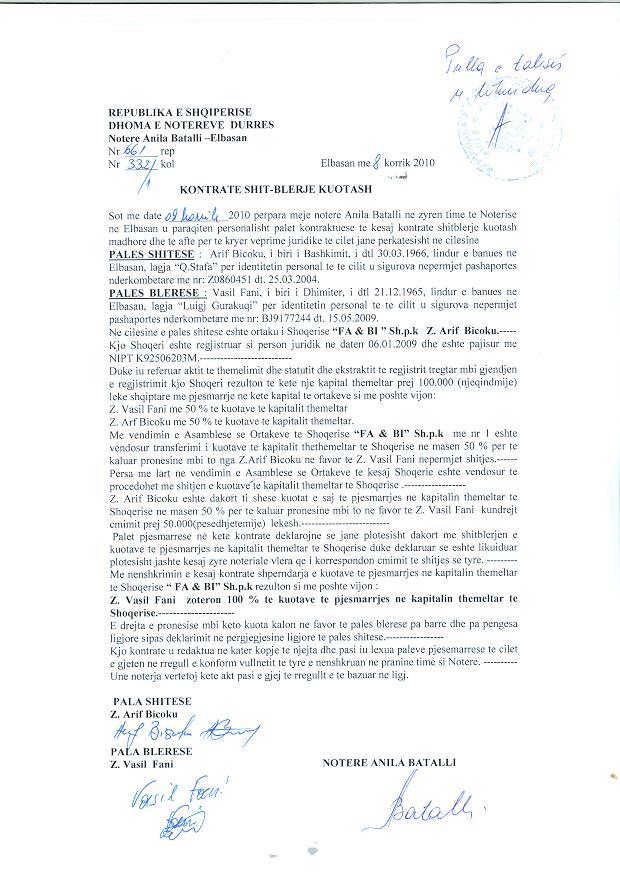 → Ekstrakt historik i regjistrit tregtar date 04.08.2021 → Akti i themelimit → Kontrate shit-blerje kuotash date 08.07.2010 |