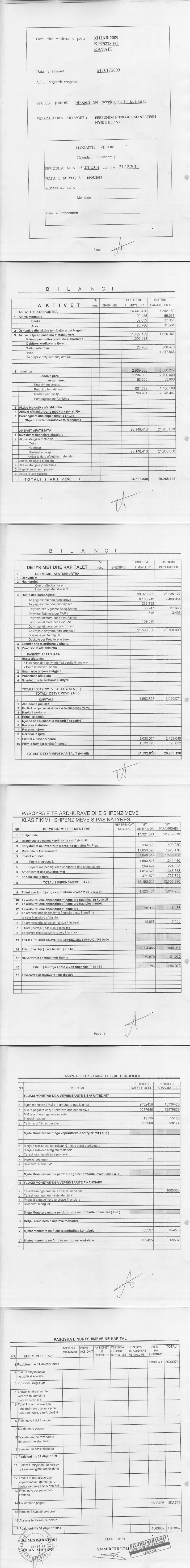 Xhiro Vjetore(Lekë) 2023:301 758 710,00 Xhiro Vjetore(Lekë) 2022:180 702 930,00 Xhiro Vjetore(Lekë) 2021:68 650 743,00 Xhiro Vjetore(Lekë) 2020:10 753 375,00 Xhiro Vjetore(Lekë) 2019:81 009 725,00 Xhiro Vjetore(Lekë) 2018:79 369 340,00 Xhiro Vjetore(Lekë) 2017:70 886 630,00 Xhiro Vjetore(Lekë) 2016:35 186 640,00 Xhiro Vjetore(Lekë) 2015:18 943 801,00 Xhiro Vjetore(Lekë) 2014: 17 321 541,00 Xhiro Vjetore(Lekë) 2013: 12 782 019,00 Xhiro Vjetore(Lekë) 2012: 2 829 134,00 Xhiro Vjetore(Lekë) 2010: 5 095 251,00 |