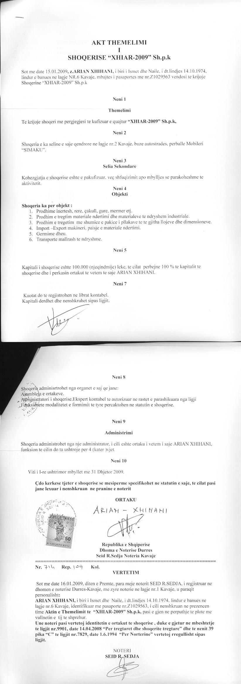 → Ekstrakti Historik i Regjistrit Tregtar date 31.07.2024 → Akti i themelimit te Shoqerise → Kontrate e shitjes se aksioneve date 18.09.2018 → Vendim i Asamblese se ortakeve date 20.05.2023 → Pasqyra e Te ardhurave dhe Shpenzimeve |