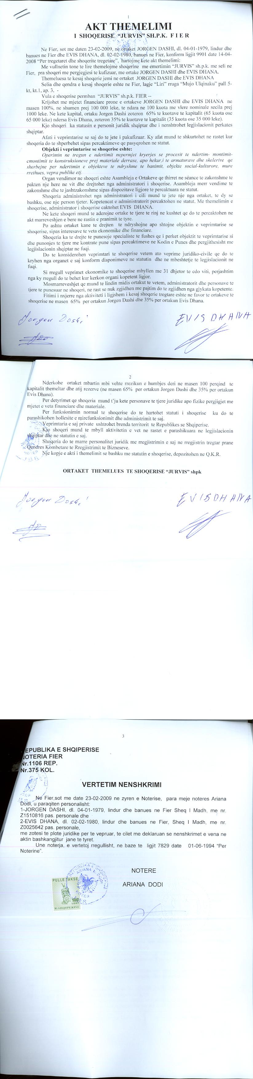 → Ekstrakt Historik i Regjistrit Tregtar date 23.02.2023 → Akt themelimi i Shoqerise → Kontrate Shitje Kuotash date 10.12.2013 |