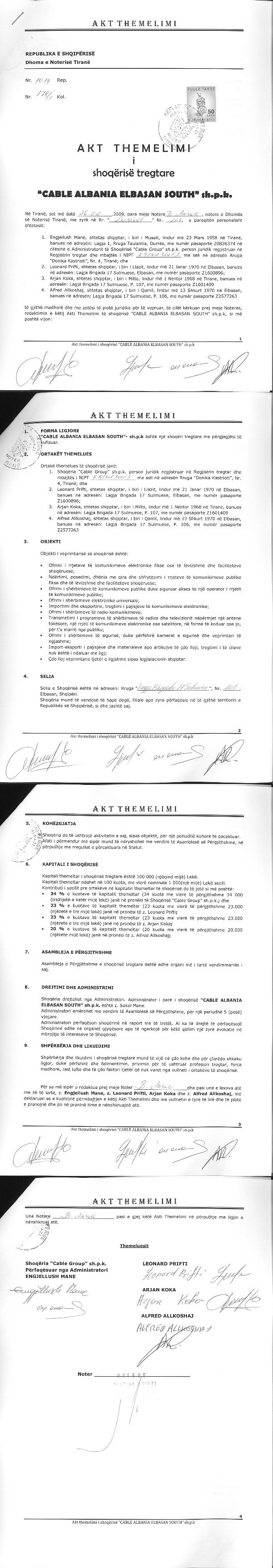 | Shoqëri Mëmë / Zotërues për këtë Subjekt: | CABLE GROUP, shoqëri me përgjegjësi te kufizuar e se drejtës shqiptare, me NIPT K91423001S me seli qendrore ne Tirane, Rruga”Donika Kastrioti”, nr.4 dhe administrator & ortak i vetem Engjëllush Mane. Sipas te dhenave te QKB deri me date 17.08.2022 Subjekti Juridik nuk ka regjistruar të dhëna në regjistrin e pronarëve përfitues RPP |