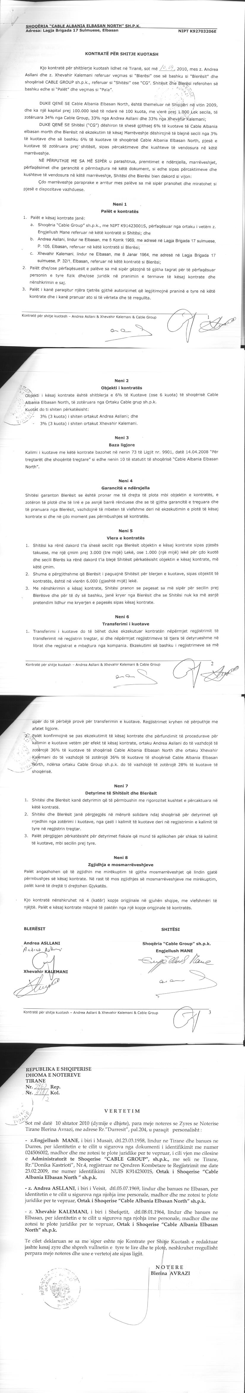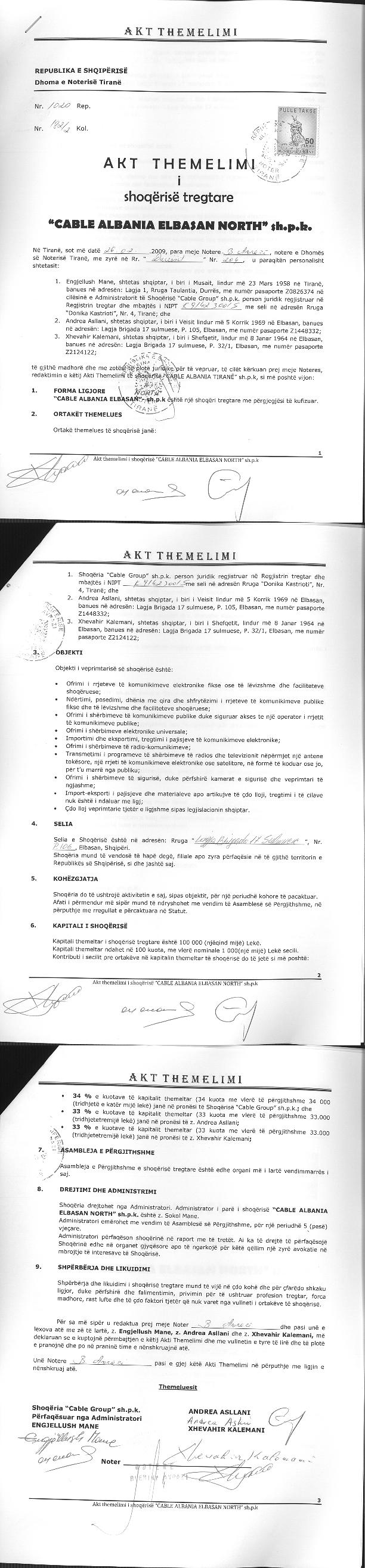 → Ekstrakti Historik i Regjistrit Tregtar date 17.08.2022 → Akt themelimi i Shoqerise → Kontrate Shitje Kuotash date 10.09.2010 → Vendimi date 03.02.2014 → Urdher per Venie Sekuestro date 12.10.2015 |