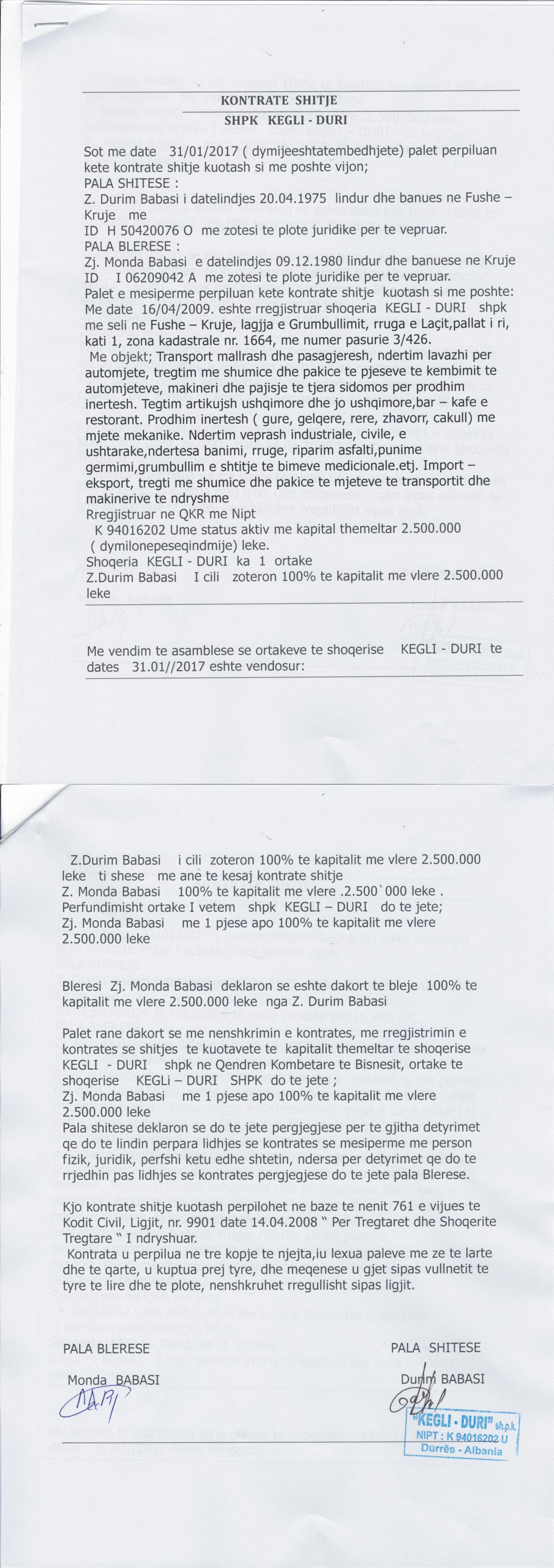 → Ekstrakt historik i regjistrit tregtar 11.06.2021 → Akti i themelimit → Kontrate shitje 20.05.2019 → Kontrate shitje date 24.09.2020 → Kontrate shitje date 15.08.2018 → Kontrate shitje 31.01.2017 → Ekstrakt Historik i Regjistrit Tregtar date 28.10.2024 |