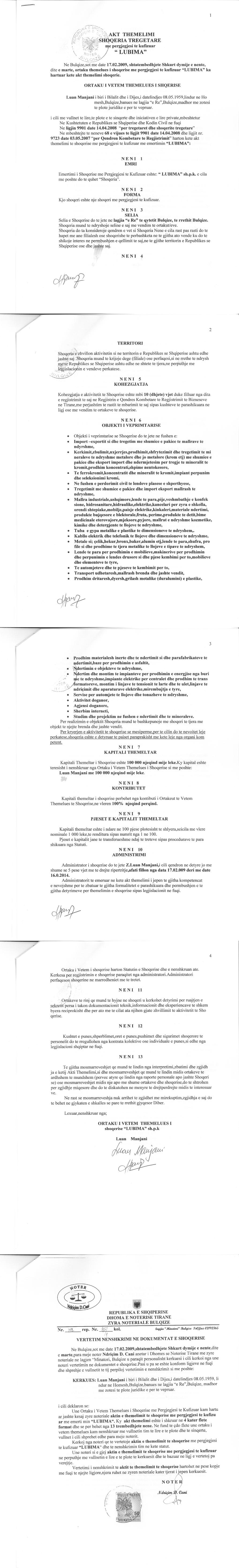 | Forma ligjore: | Shoqëri me Përgjegjësi të Kufizuar SH.P.K |