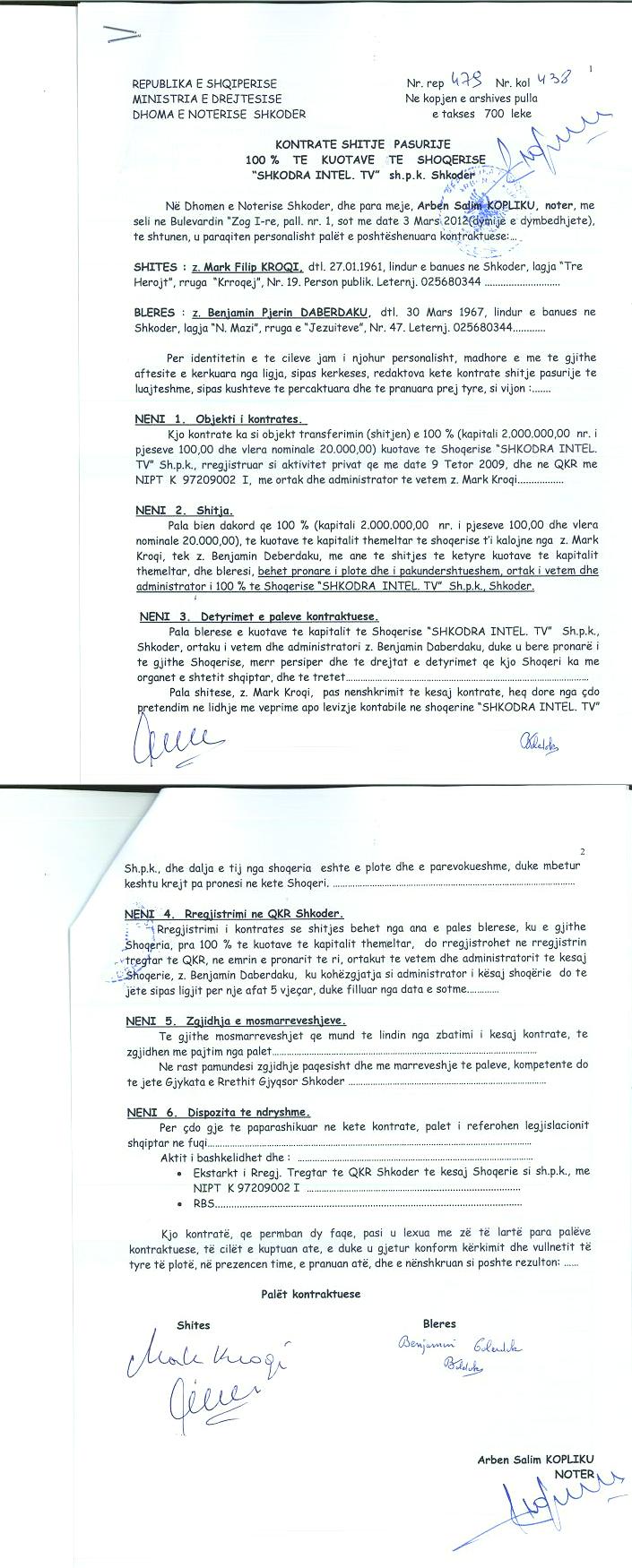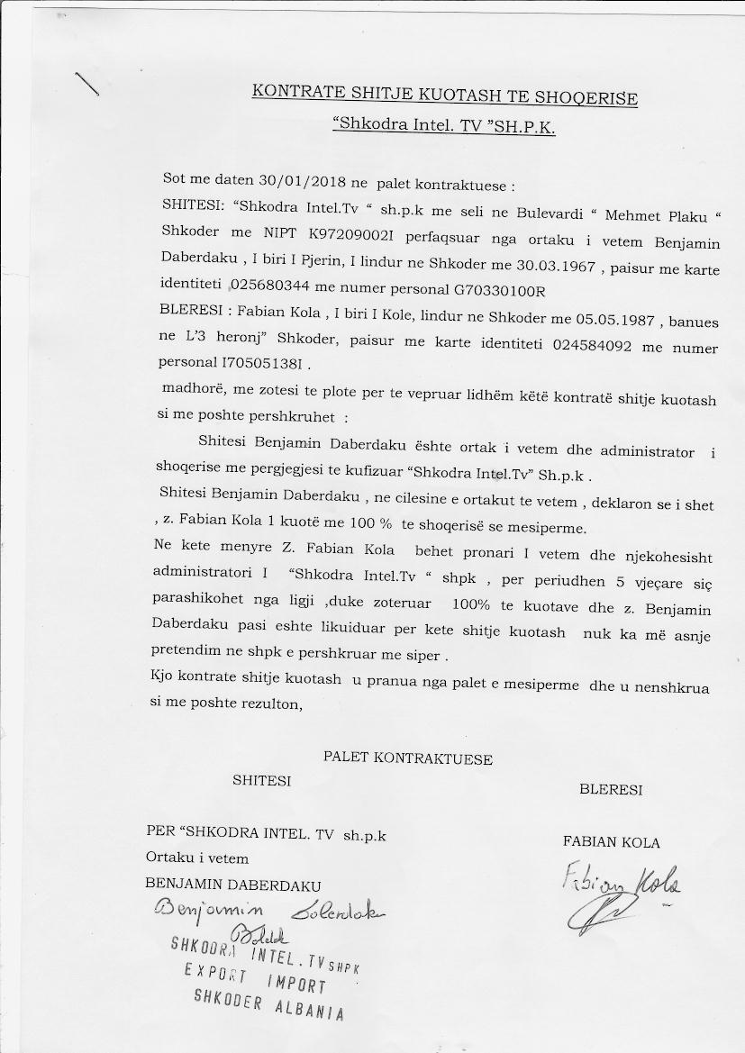 → Ekstrakt historik i regjistrit tregtar date 31.01.2022 → Akti i themelimit → Kontrate shitje kuotash date 30.01.2018 → Kontrate shitje kuotash date 03.03.2012 |