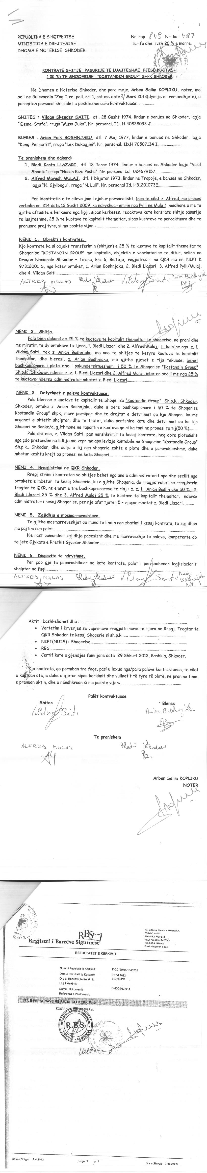 → Ekstrakt historik i regjistrit tregtar date 10.11.2021 → Statuti i shoqerise → Kontrate shitje kuotash date 22.02.2021 → Kontrate shitje e pasurive te luajtshme date 31.03.2013 |