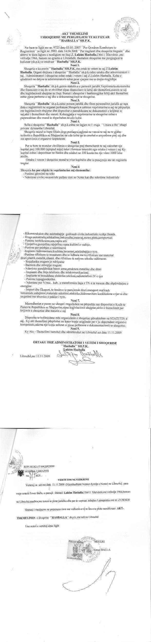 → Ekstrakt historik i regjistrit tregtar date 13.09.2021 → Akti i themelimit → Ekstrakt Historik i Regjistrit Tregtar date 24.09.2024 |