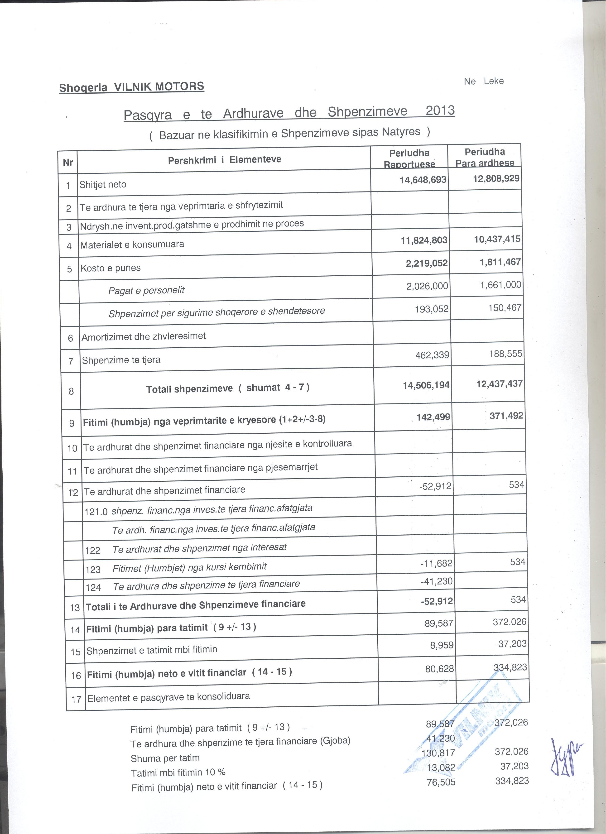 1 816 195,00 Fitimi para Tatimit(Lekë) 2022: 417 511,00 Fitimi para Tatimit(Lekë) 2021: 1 673 101,00 Fitimi para Tatimit(Lekë) 2020: 2 730 325,00 Fitimi para Tatimit(Lekë) 2019: 945 220,00 Fitimi para Tatimit(Lekë) 2018: 1 197 418,00 Fitimi para Tatimit(Lekë) 2017: 940 598,00 Fitimi para Tatimit(Lekë) 2016: 679 855,00 Fitimi para Tatimit(Lekë) 2015: 541 795,00 Fitimi para Tatimit(Lekë) 2014: 689 695,00 Fitimi para Tatimit(Lekë) 2013: 89 587,00 Fitimi para Tatimit(Lekë) 2012: 372 026,00 |