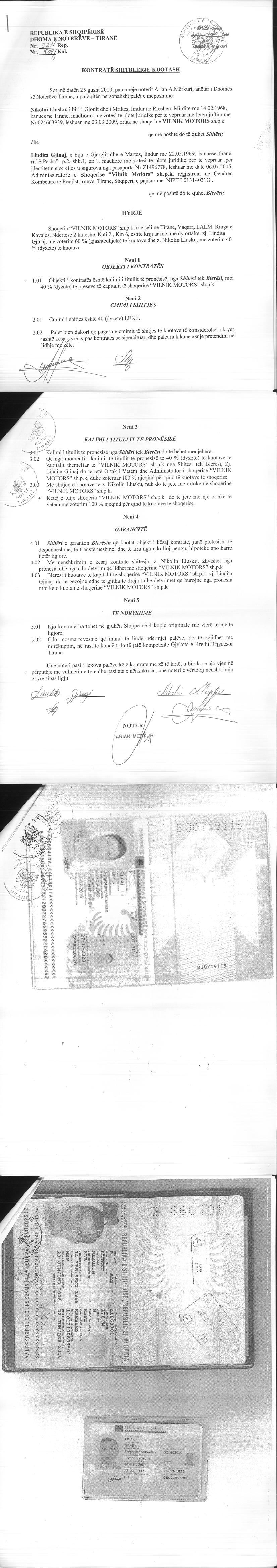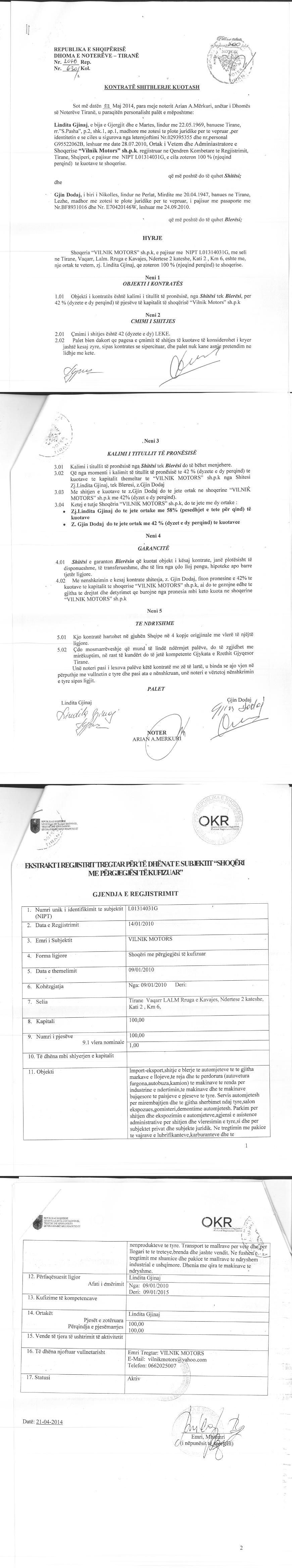 → Ekstrakt historik i regjistrit tregtar 02.07.2021 → Akti i themelimit → Kontrate shitblerje kuotash date 22.05.2014 → Kontrate shitblerje kuotash date 25.08.2010 → Ekstrakt Historik i Regjistrit Tregtar date 17.03.2025 |
