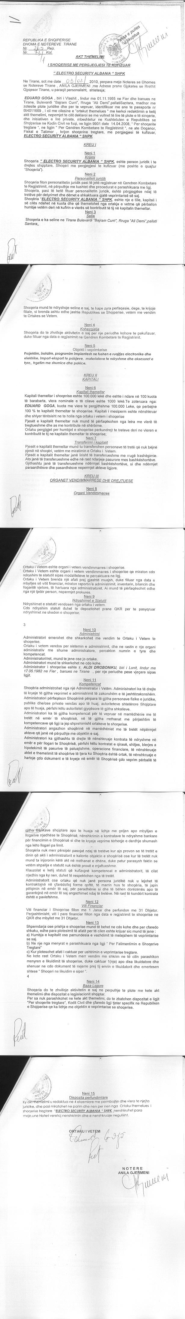 | Emërtime të tjera Tregtare: | ELECTRO SECURITY ALBANIA |