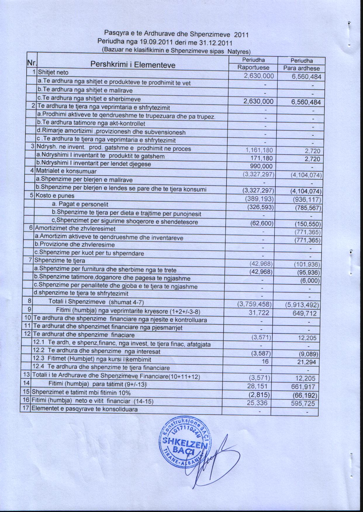 Xhiro Vjetore(Lekë) 2023:26 628 198,00 Xhiro Vjetore(Lekë) 2022:11 426 063,00 Xhiro Vjetore(Lekë) 2021:27 436 236,00 Xhiro Vjetore(Lekë) 2020:15 114 939,00 Xhiro Vjetore(Lekë) 2019:13 631 034,00 Xhiro Vjetore(Lekë) 2018:11 785 585,00 Xhiro Vjetore(Lekë) 2017:11 626 850,00 Xhiro Vjetore(Lekë) 2016:23 542 166,00 Xhiro Vjetore(Lekë) 2014: 28 752 287,00 Xhiro Vjetore(Lekë) 2013: 20 322 314,00 Xhiro Vjetore(Lekë) 2012: 13 986 455,00 Xhiro Vjetore(Lekë) 2011: 2 630 000,00 Xhiro Vjetore(Lekë) 2010: 6 558 653,00 |