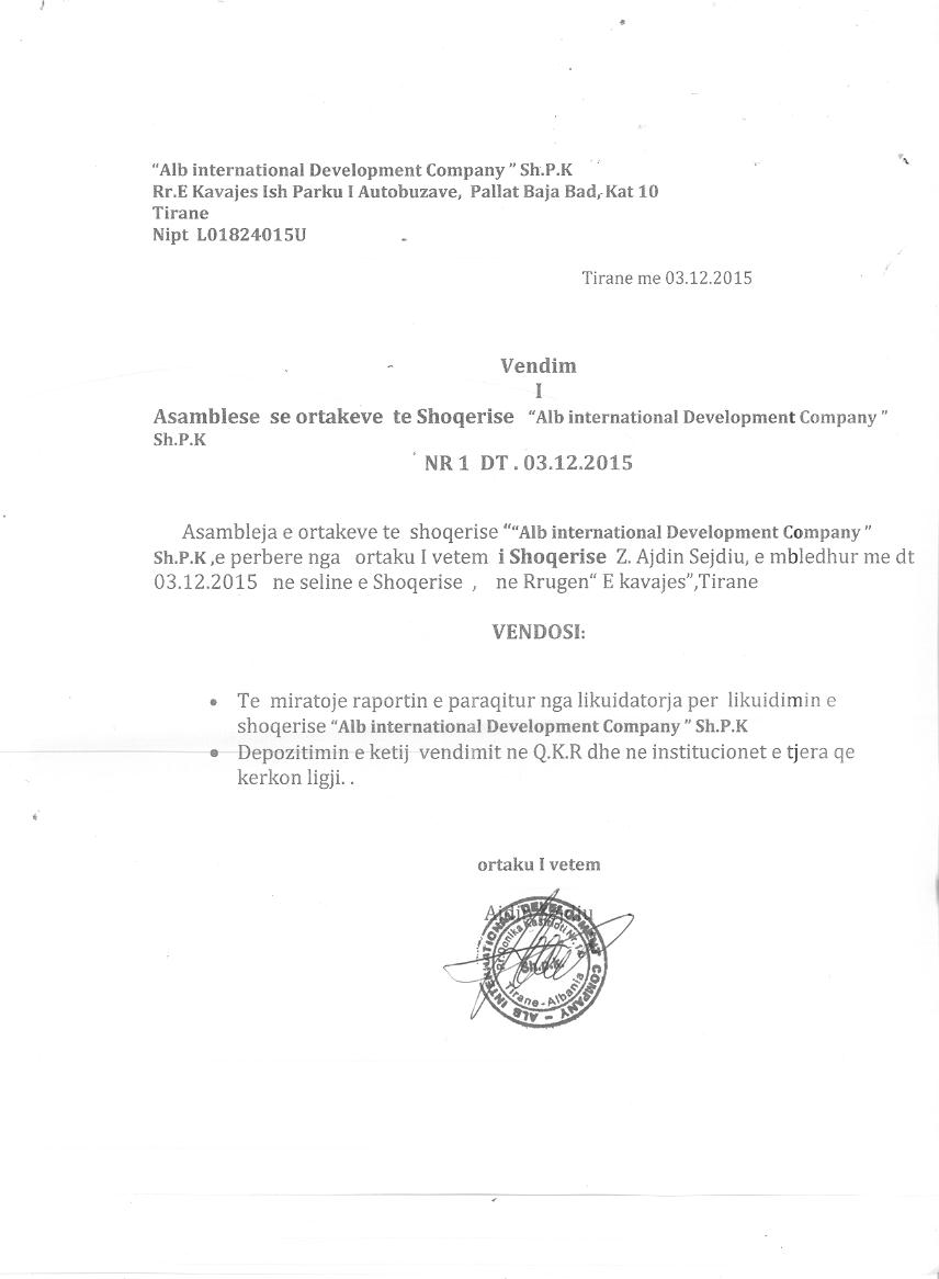 | Emërtime të tjera Tregtare: | ALB INTERNATIONAL DEVELOPMENT COMPANY |