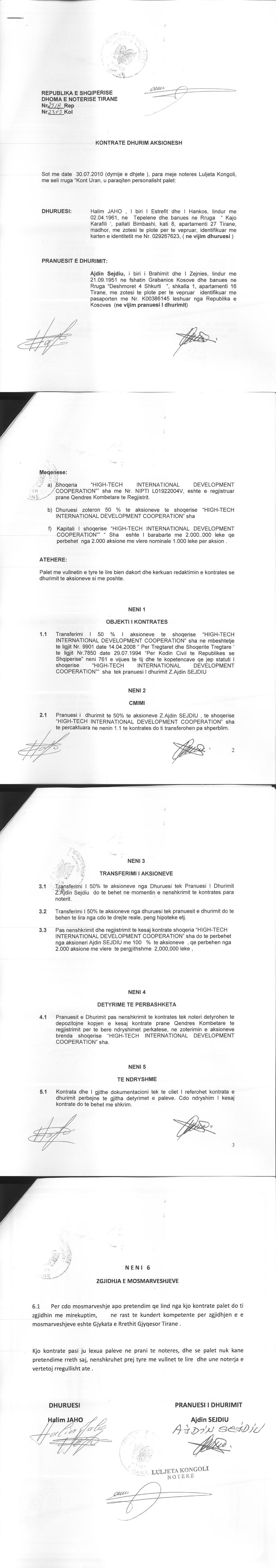 → Ekstrakti Historik i Regjistrit Tregtar date 25.01.2023 → Statuti i Shoqerise → Kontrate Dhurimi Aksionesh date 30.07.2010 → Kontrate Dhurimi Aksionesh date 21.01.2011 → Kontrate Dhurimi Aksionesh date 28.09.2011 → Kontrate Dhurimi Aksionesh date 24.02.2012 → Kontrate Dhurimi Aksionesh date 16.07.2012 → Vendim i Aksionerit te Vetem, Zmadhim Kapitali date 29.08.2012 → Vendim i Aksionerit te Vetem, Likuidim Shoqerie date 05.02.2013 → Raport Likuidimi i Shoqerise → Vendim i Aksionerit te Vetem, Cregjistrim Shoqerie date 15.12.2015 → Ekstrakti Historik i Regjistrit te Pronareve Perfitues date 25.01.2023 |