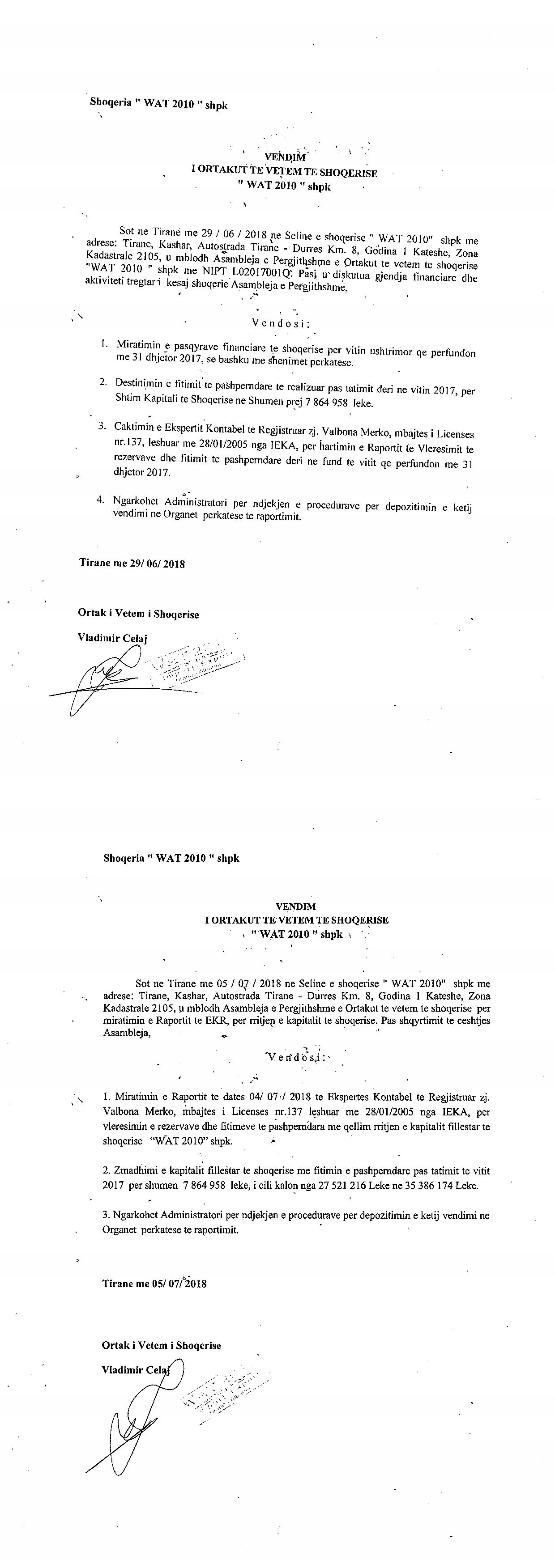 → Ekstrakt historik i regjistrit tregtar date 12.01.2022 → Akti i themelimit → Vendimi i ortakut te vetem per zmadhimin e kapitalit date 16.11.2020 → Vendim i ortakut te vetem per zmadhimin e kapitalit date 12.08.2013 → Vendim i ortakut te vetem per zmadhimin e kapitalit date 29.06.2018 |